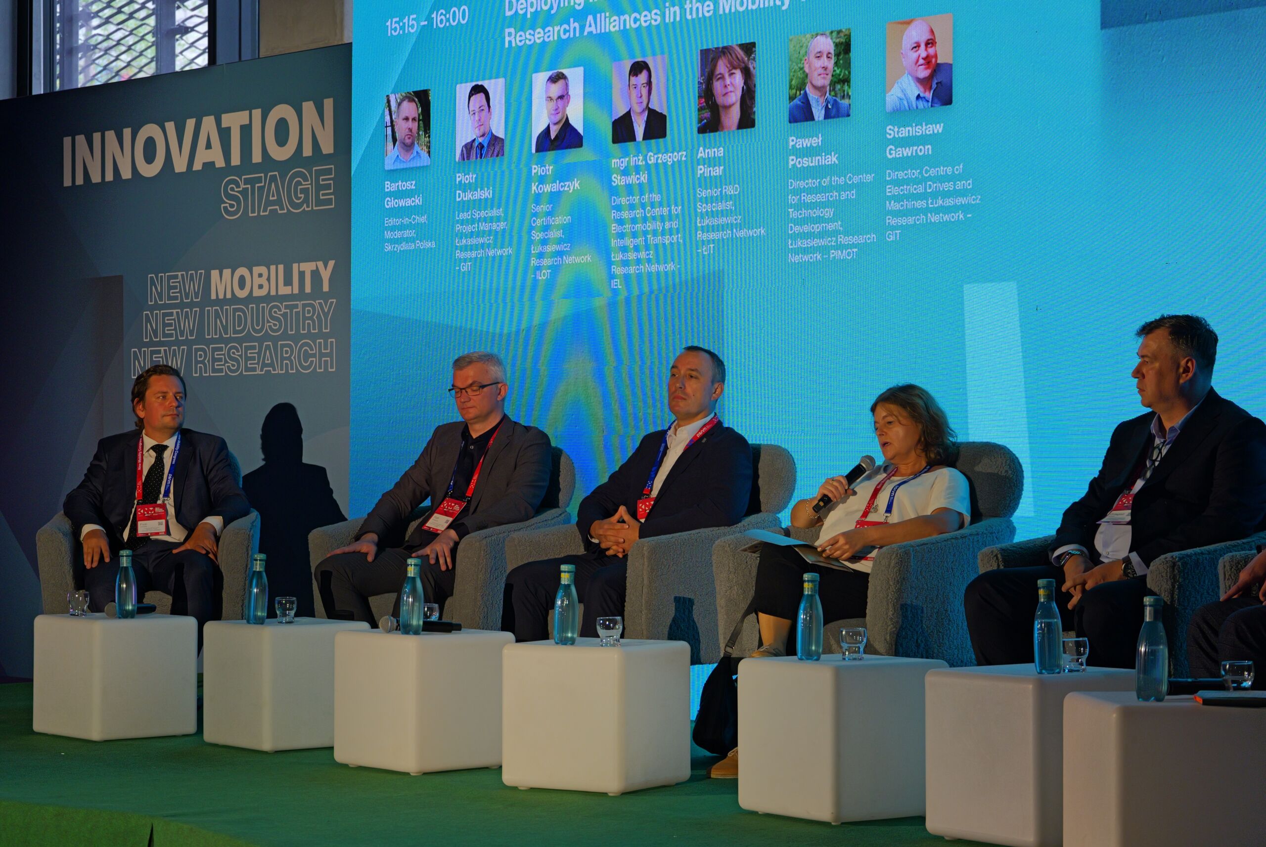 Podczas kongresu dr inż. Anna Pinar z Łukasiewicz – ŁIT uczestniczyła w panelu pt. „Wdrażanie innowacji: Rola sojuszów badawczych w transformacji mobilności”. Przedstawiła m.in. innowacyjną technologię opracowaną w Centrum Gospodarki o Obiegu Zamkniętym – elastyczny materiał z metaliczną powłoką naniesioną metodą magnetronową, który ekranuje promieniowanie elektromagnetyczne PEM.